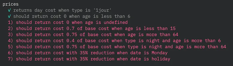 - ✅ type=“1jour” & age < 15 => then cost is 70% of day cost