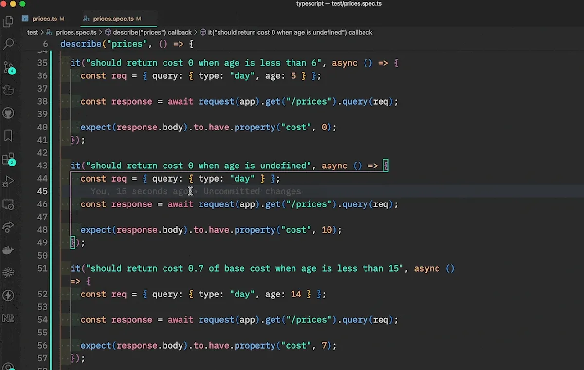 🤖 Writing tests for this code can be a bit tricky, as there are a lot of conditions to consider. To make sure that all the conditions are tested, you’ll need to create a test for each condition. For example, you could create a test to check that the cost is 0 when the age is less than 6, and another test to check that the cost is reduced when the age is between 6 and 15. You could also create tests to check that the cost is reduced on holidays and on Mondays.