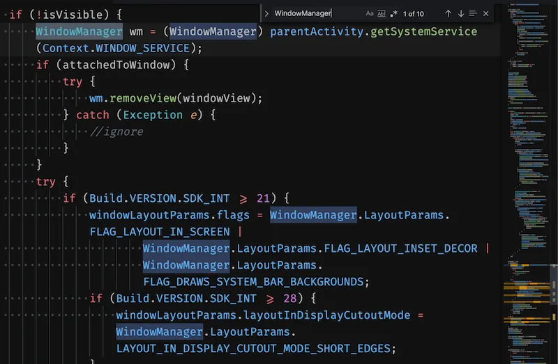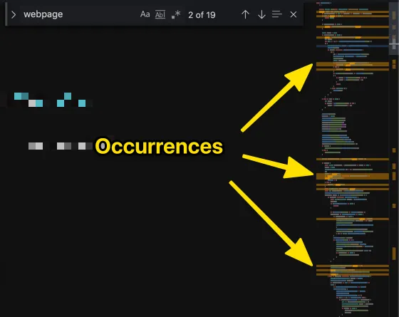 Then, take a word from the previous list and search for it. Highlight all the occurrences of this keyword in the code.
