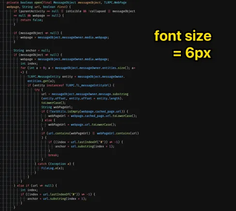 You don’t want to read the code, you want to fit as much code as possible on your screen.