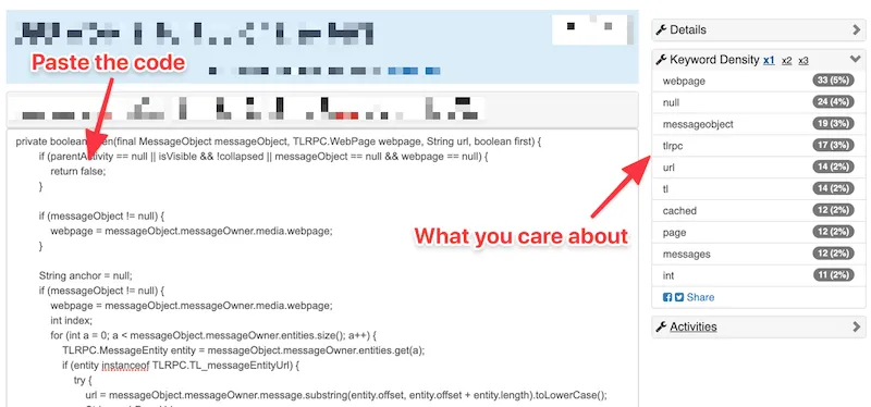 ⚠️ You might not want / be allowed to send your code to such an online tool. In this situation, find a script you can run locally (here are example in many languages). You can also write your own (here’s a tutorial in Python). Thanks Steve (Gadget) Barnes for pointing this out!